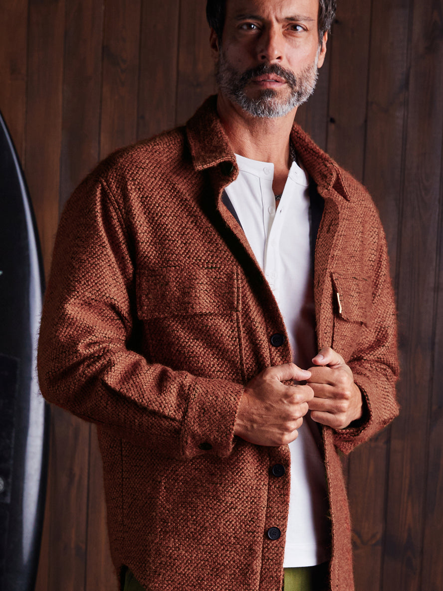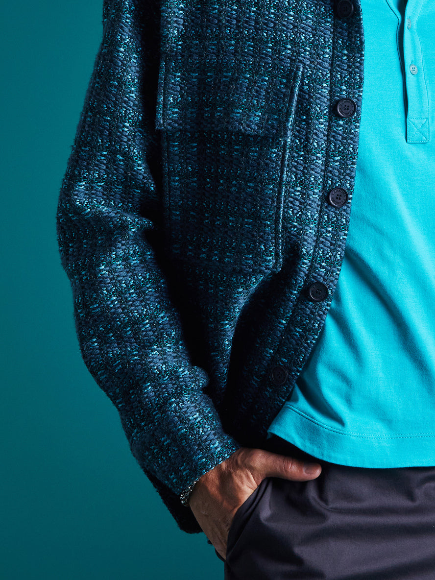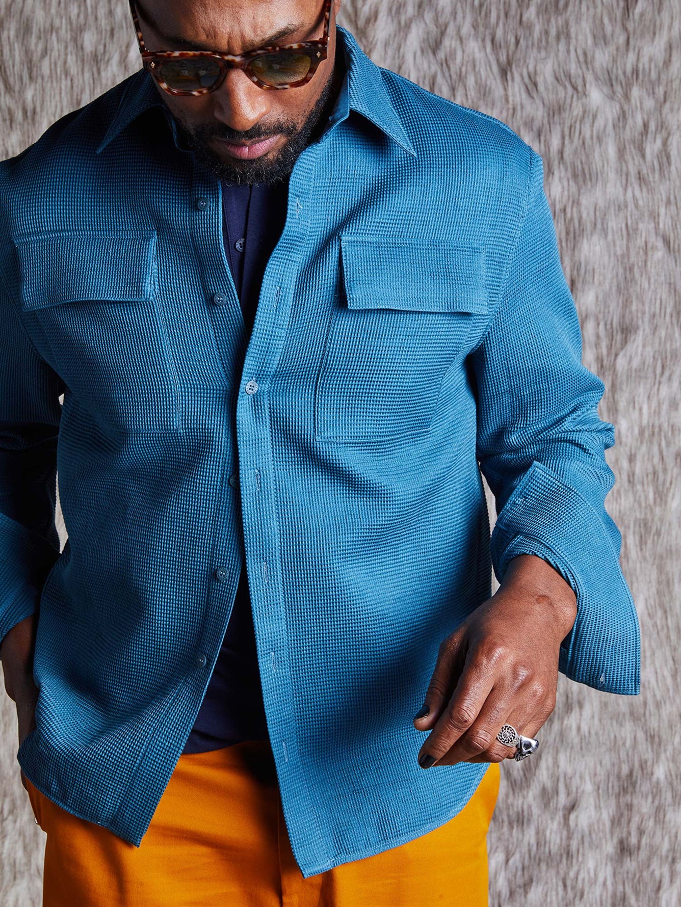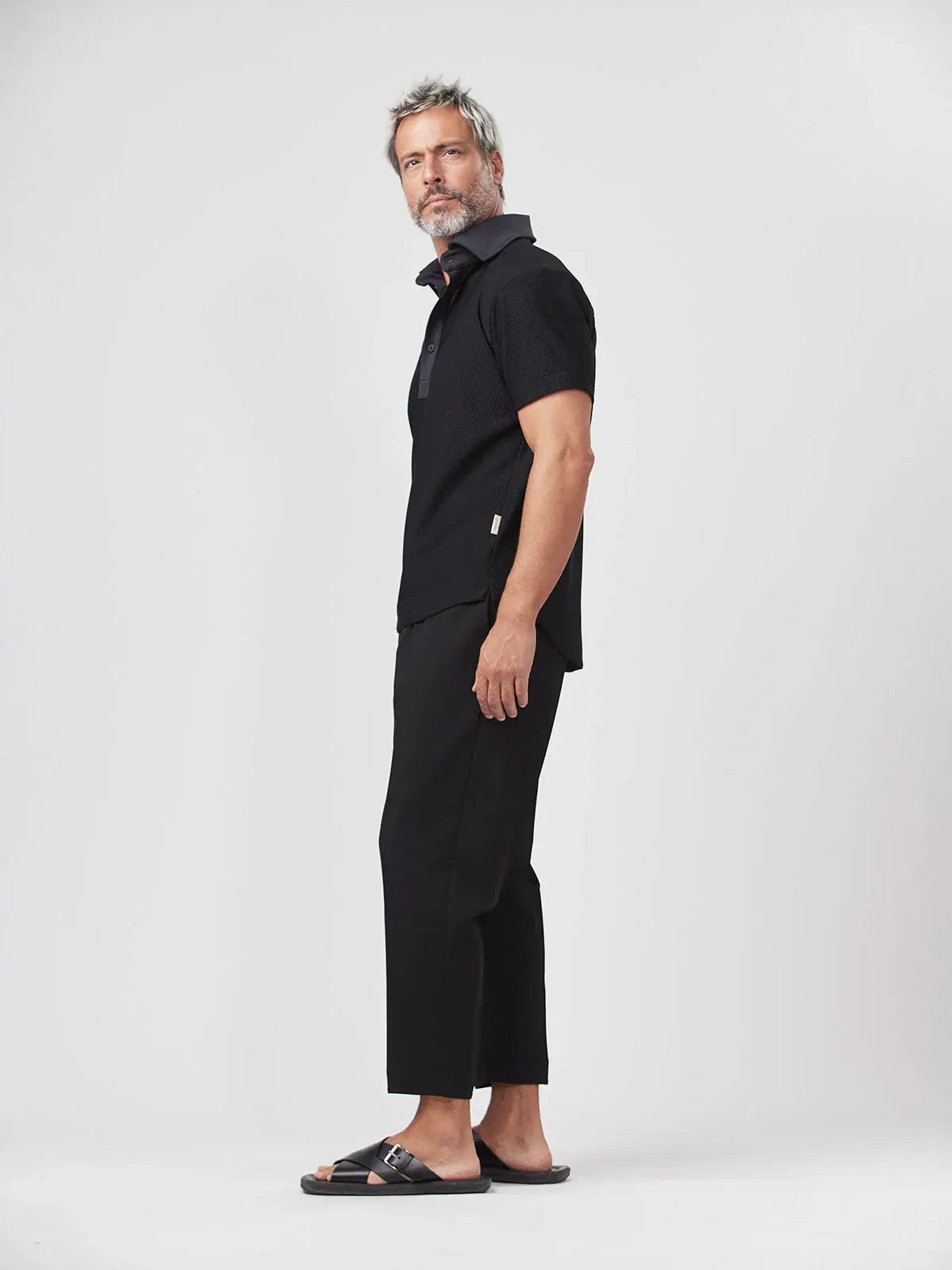 “There's never a better time to look sexy than on vacation. Fabrics that breathe + an elegant silhouette turn the heat up on his down time.”