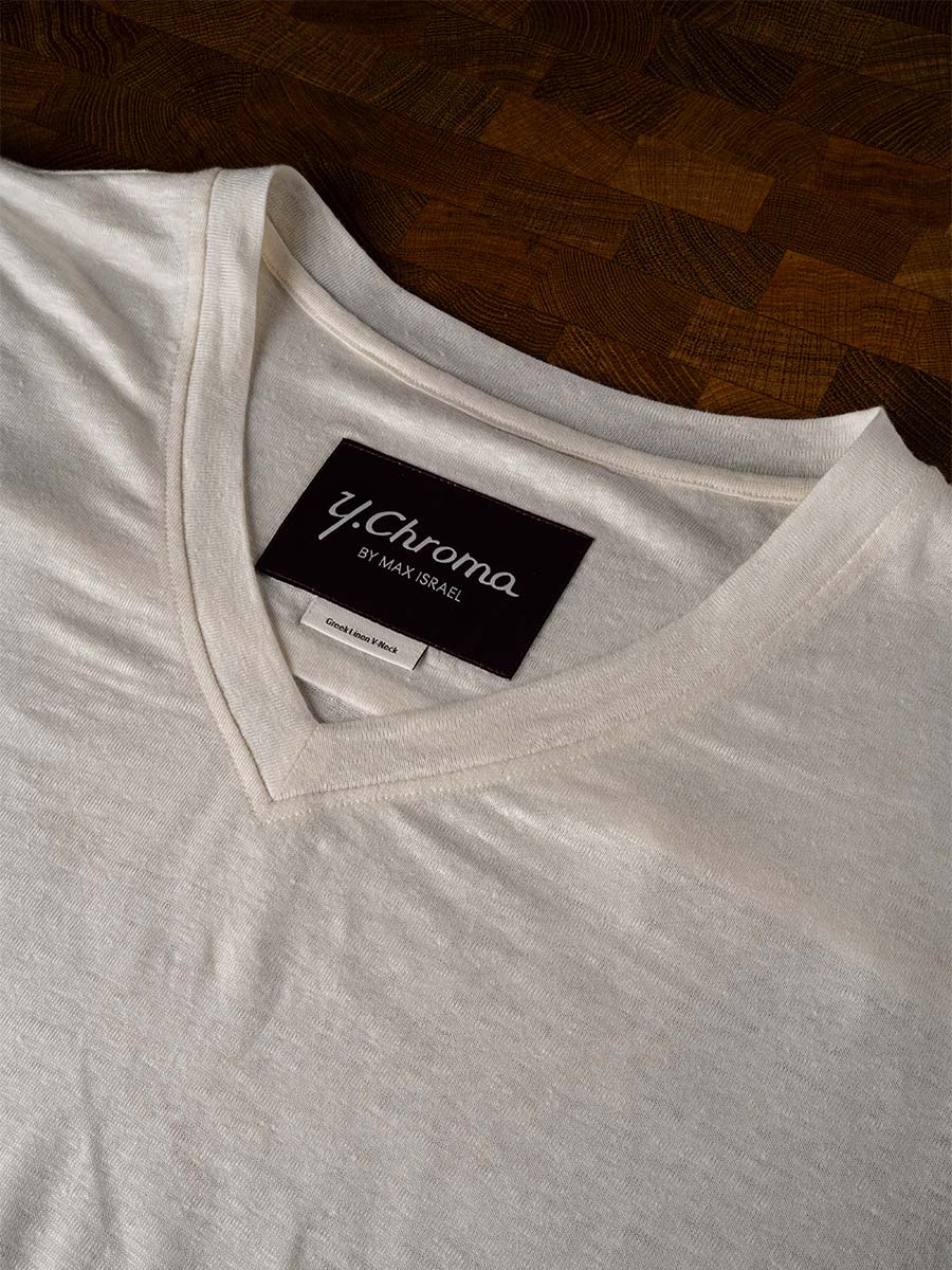 THE (GREEK LINEN) V-NECK THAT ADDS UP-MARKET QUALITY TO A CLASSIC T-SHIRT.